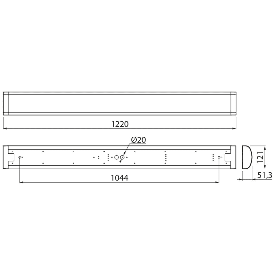 Lamp size 1220 x 121 x 51 mm.