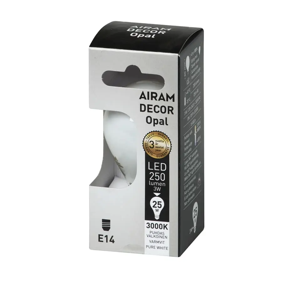 The unique feature of the series is the completely comprehensive 360-degree light distribution of the lamps. The lamp also gives light in the direction of the base, which is a particularly good feature in, for example, plafonds. Thanks to the opal cover, the lamp’s light does not dazzle. Dimmable models with LED dimmers are distinguished by the DIM symbol on the package. The light shade of the lamps is a pleasant pure white (3000 K). The environmentally friendly cardboard packaging is color coded. The color indicates the light bulb equivalent and makes it easier for the consumer to choose.