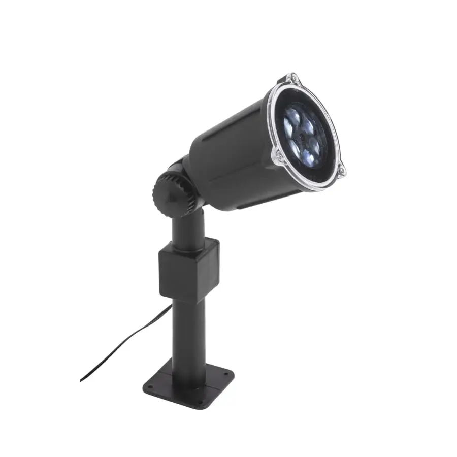 En projektor lämplig för inomhus eller täckta utomhusutrymmen, som projicerar snöflingor och stjärnmönster i en roterande rörelse. Jag reflekterar ca 10m2 från ett avstånd av 3,5m. En vridbar lampa som kan låsas i ett specifikt läge. Installation antingen permanent med skruvar eller markspetsar. Ljuset får inte reflekteras direkt in i ögonen. Ej för användning av barn. Led 4 st, vit, ej utbytbar. Transformator DC 12V 6W, IP44, för inom- och utomhusbruk.