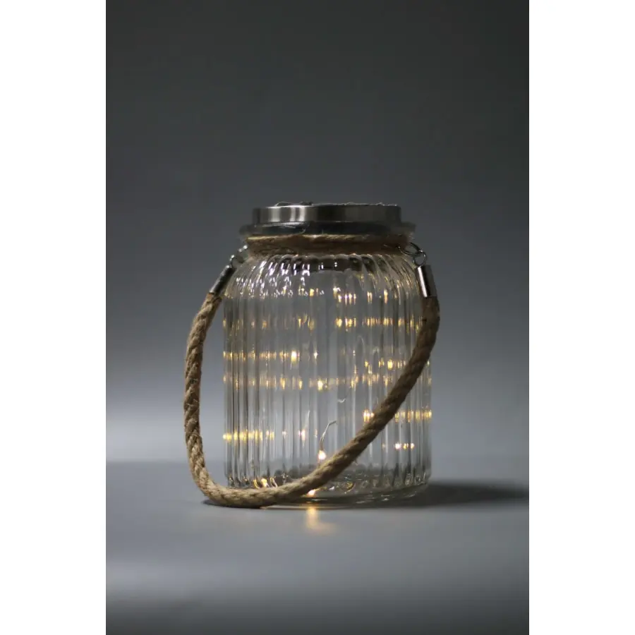 A nice glass jar with a solar-powered LED inside, 15 pcs., warm white.