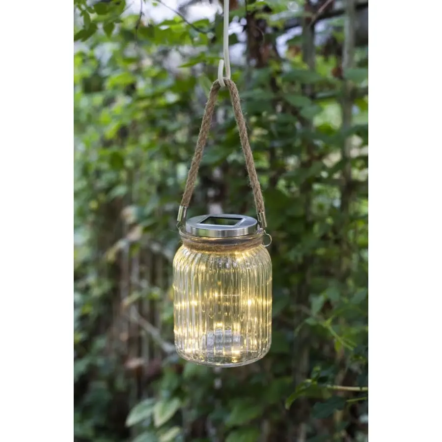 En fin glasburk med solcellsdriven LED inuti, 15 st, varmvit.