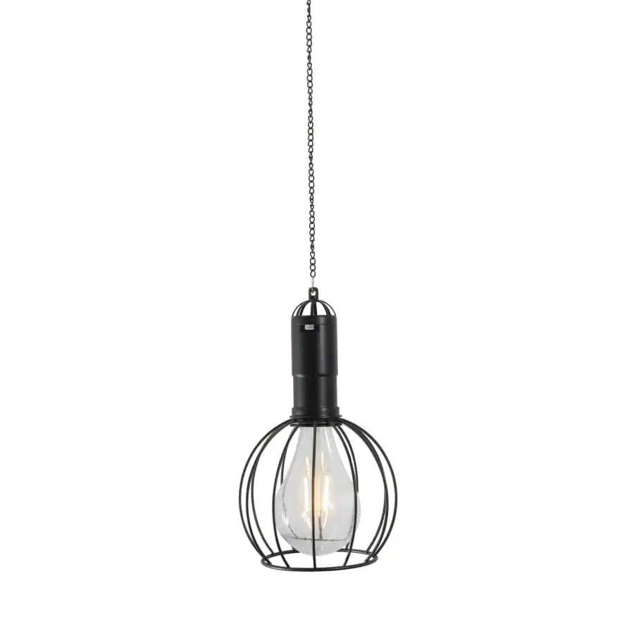Hängande solcellslykta för att lysa upp terrassen eller balkongen. Storlek Ø 12,5cm x 22,5cm + hängkedja 29cm. Led 2st varmgul. Inkluderar utbytbart och uppladdningsbart batteri 1xNi-Mh AA 300 mAh 1,2V. Material metall och plast.