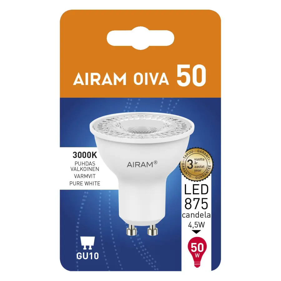 The Oiva lamp series covers all the most common home lighting needs. The light shade is a pleasant pure white (3000 K). The opal light source provides glare-free light. The lamps are small and light and replace incandescent and halogen lamps. The environmentally friendly cardboard packaging is color coded. The color indicates the light bulb equivalent and makes the choice easier. The burning life of the lamps is 15,000 hours and they last more than 300,000 lighting times.