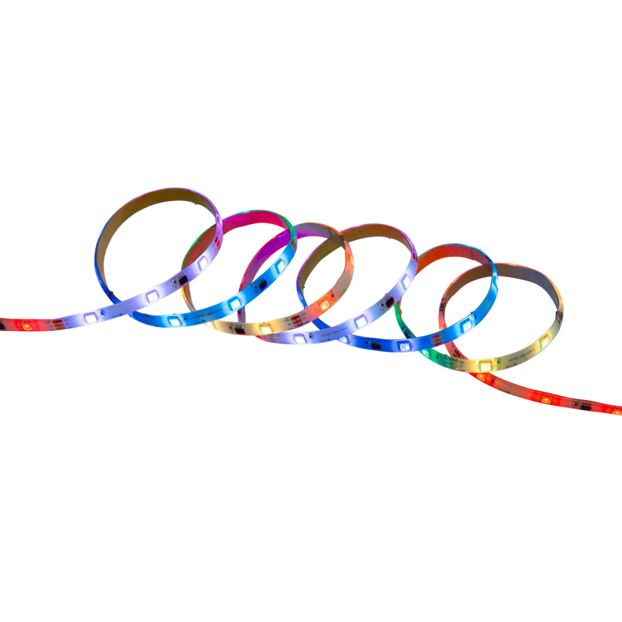 An RGB LED strip light designed for indoor use with a beautiful gradient effect (Dreamcolor). Available in two different lengths. You can adjust the colors and light intensity with the included remote control or the Airam SmartHome app. The SmartHome app also allows you to access the versatile timer function.