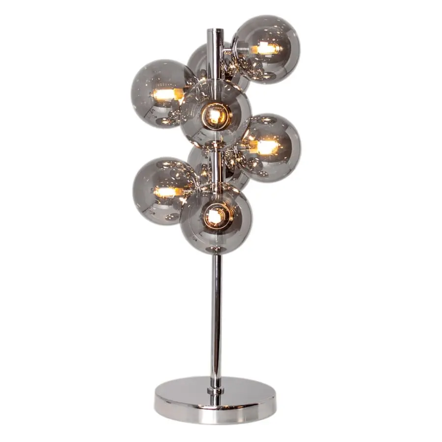 Splendor is an elegant, modern table lamp. Features eight glass spheres, encapsulating the light sources. This eye catcher can be placed for example on the sideboard or the window board. A dimmer is integrated in the cord, and thus swift transitions from smooth ambience lighting to bright and powerful illumination are easily accomplished.