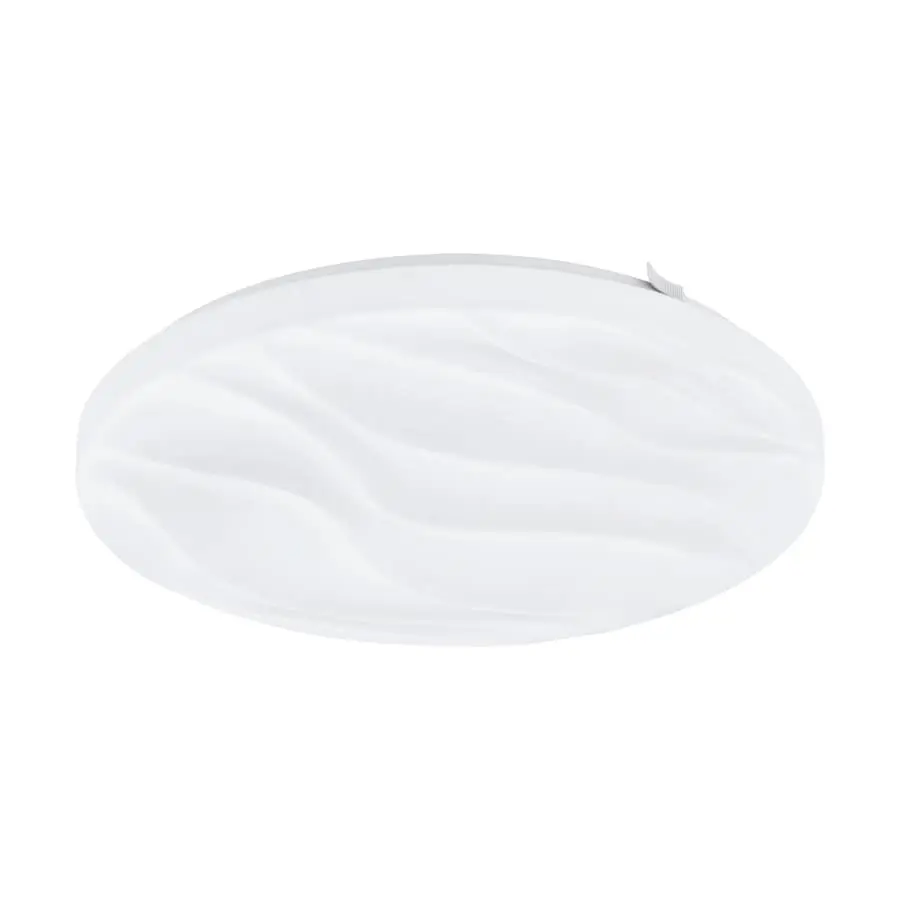 The BENARIBA LED ceiling light features a round white plastic cover with a wave-shaped design and a white metal rear panel. The integrated LEDs produce a pleasant warm white light. The classic ceiling light blends seamlessly into modern interiors and works well in any living space, whether the kitchen, living room, bedroom, hallway or dining room.