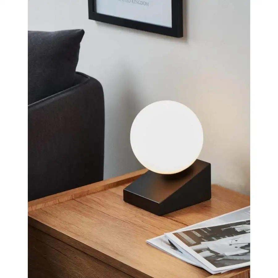 The LED table lamp BILBANA consists of a geometric, black metal base that has been combined with an opal matt light sphere made of white glass. A convenient switch on and off is possible via a switch on the cable. With its minimalist design, the puristic table lamp blends seamlessly into modern furnishings and offers stylish lighting in the bedroom, living room or hallway. The bulb is not included in the package. The lamp is suitable for any lamp with an E14 base.