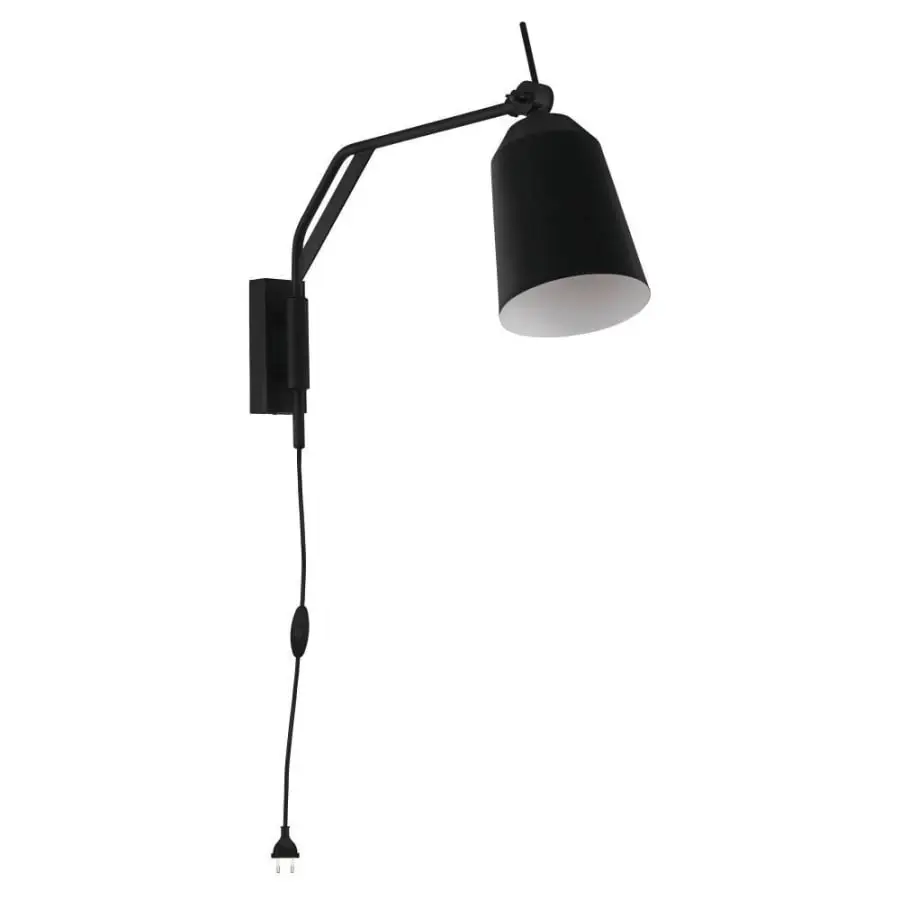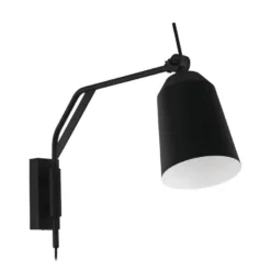 The LORETO wall light is made from black metal and has a curved adjustable arm and head. The matte white inner surface of the head creates excellent lighting, while the adjustable light element allows you to accentuate individual areas of the room. The wall light can switch on and off easily using the in-line switch. The product has a minimalist design that blends seamlessly with modern Scandi interiors and provides ideal lighting for your home. The lightbulb is not included. The product has E27 lamp holders and requires E27 lightbulbs.