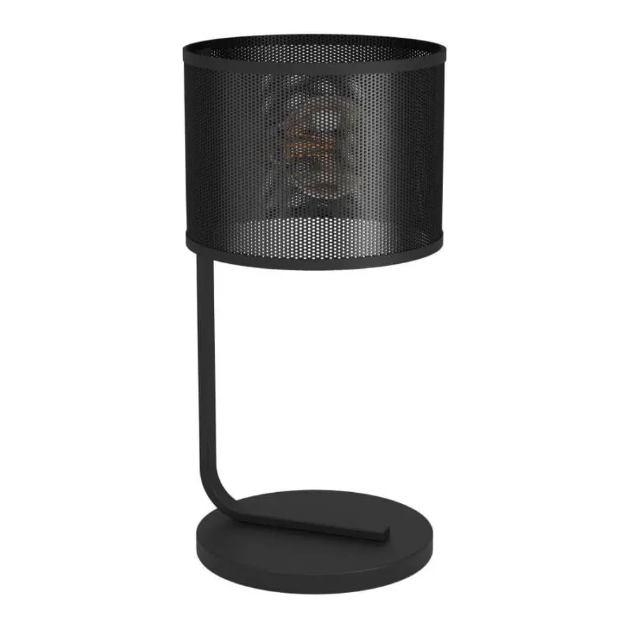 The MANBY table lamp consists of a black metal base combined with a round lampshade made of black metal. Fascinating plays of light and shadow are created through the grid as soon as the lamp is switched on. A convenient on and off -switch is on the cable. The table lamp in a monochrome industrial look rounds off discreetly modern furnishing styles and offers atmospheric lighting for every room – whether in the living room, bedroom or hallway. The filament bulb is not included in the package. The lamp is suitable for any lamp with an E27 base.