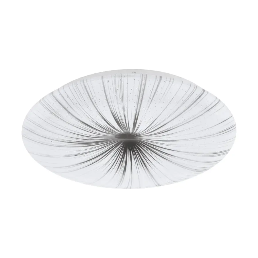 The NIEVES LED ceiling light features a round plastic cover with a white and dark grey pattern. When the light is on, it shines through the design and creates a sparkling effect like stars in the night sky. The integrated LEDs produce a pleasant warm white light and create an appealing ambience. The product has a classic design that blends into almost any interior and works well in any living space, whether in the kitchen, living room, bedroom, hallway or dining room.
