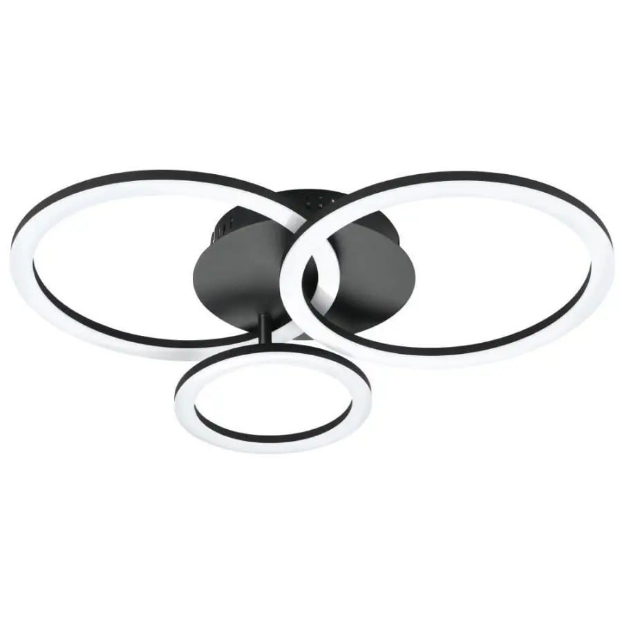 The LED ceiling light PARRAPOS-Z from the smart home range connect.Z is made with three black, round LED profiles. The differently sized LED profiles were fixed in the middle of a round, black metal base. The integrated LEDs behind the white plastic light surfaces provide pleasant light according to your wishes. You have the choice between warm white, neutral white and cool white light. It is controlled via a free app (AwoX Home Control) and gives you access to other comfort functions such as dimming, timer, presence simulation and many more. The light is controlled via Bluetooth and ZigBee 3.0 and also enables control via compatible language assistants. In addition, the smart ceiling lamp can also be controlled via the separately available remote control. The lamp with a minimalist design fits perfectly into modern facilities and is an elegant lighting in the kitchen, living room, bedroom, dining room or hallway.