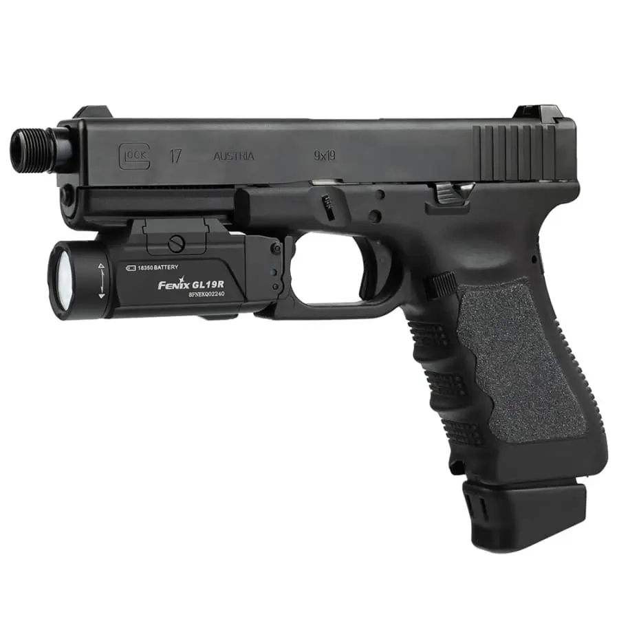 - Delivery contents: Fenix GL19R weapon light/pistol light, Fenix ARB-L18-1100P Li-ion battery, USB-C charging cable, GLOCK + MIL-STD-1913 mounting plates, replaceable O-ring seal, user manual.