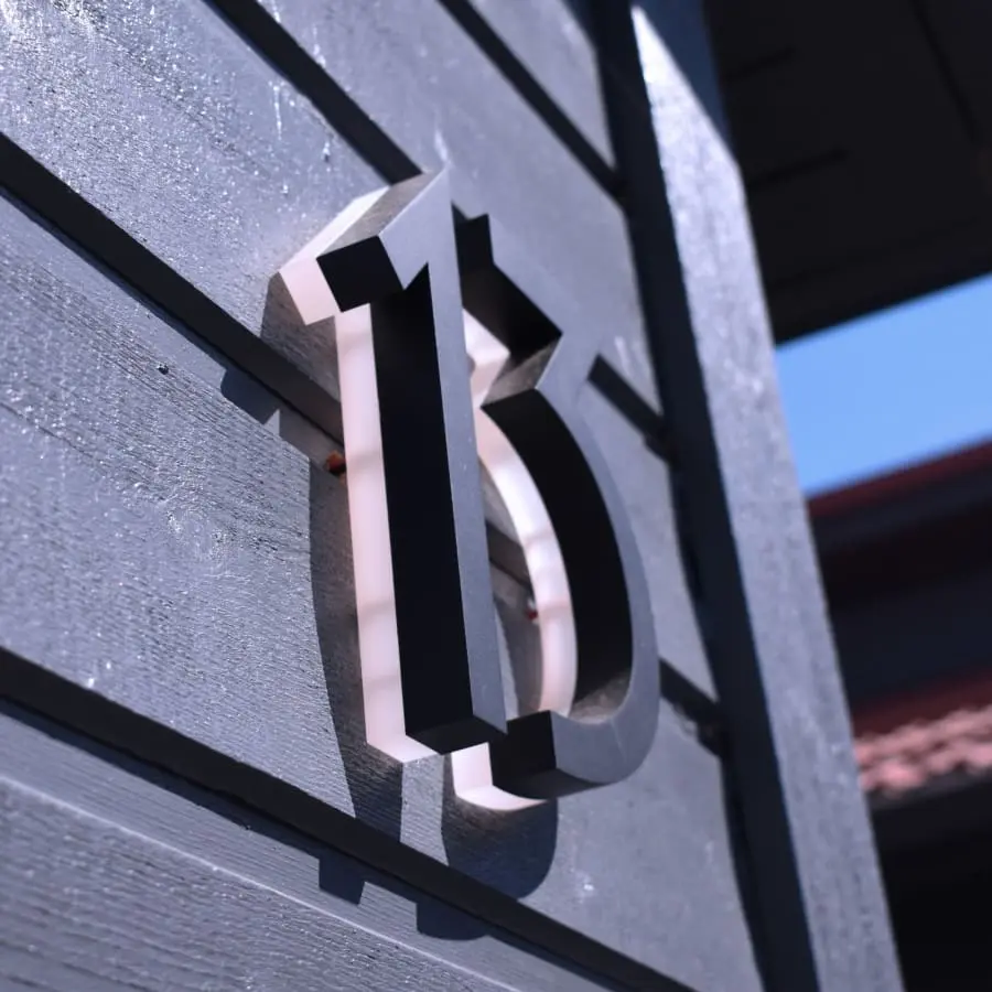 Black house number / letter with led backlight. High-quality materials and a bright backlight guarantee visibility and a long service life. The black metal frame is made of stainless steel (grade 304). The led backlight is waterproof.