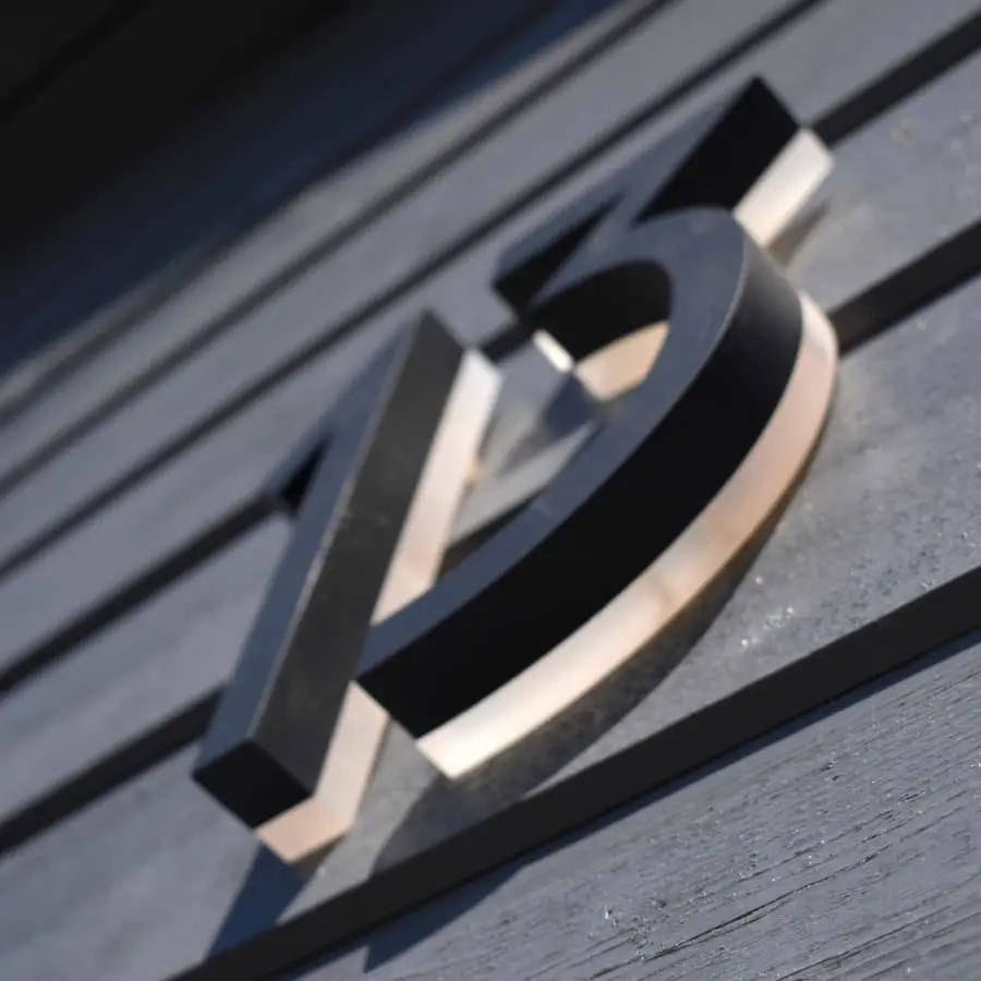 Black house number / letter with led backlight. High-quality materials and a bright backlight guarantee visibility and a long service life. The black metal frame is made of stainless steel (grade 304). The led backlight is waterproof.