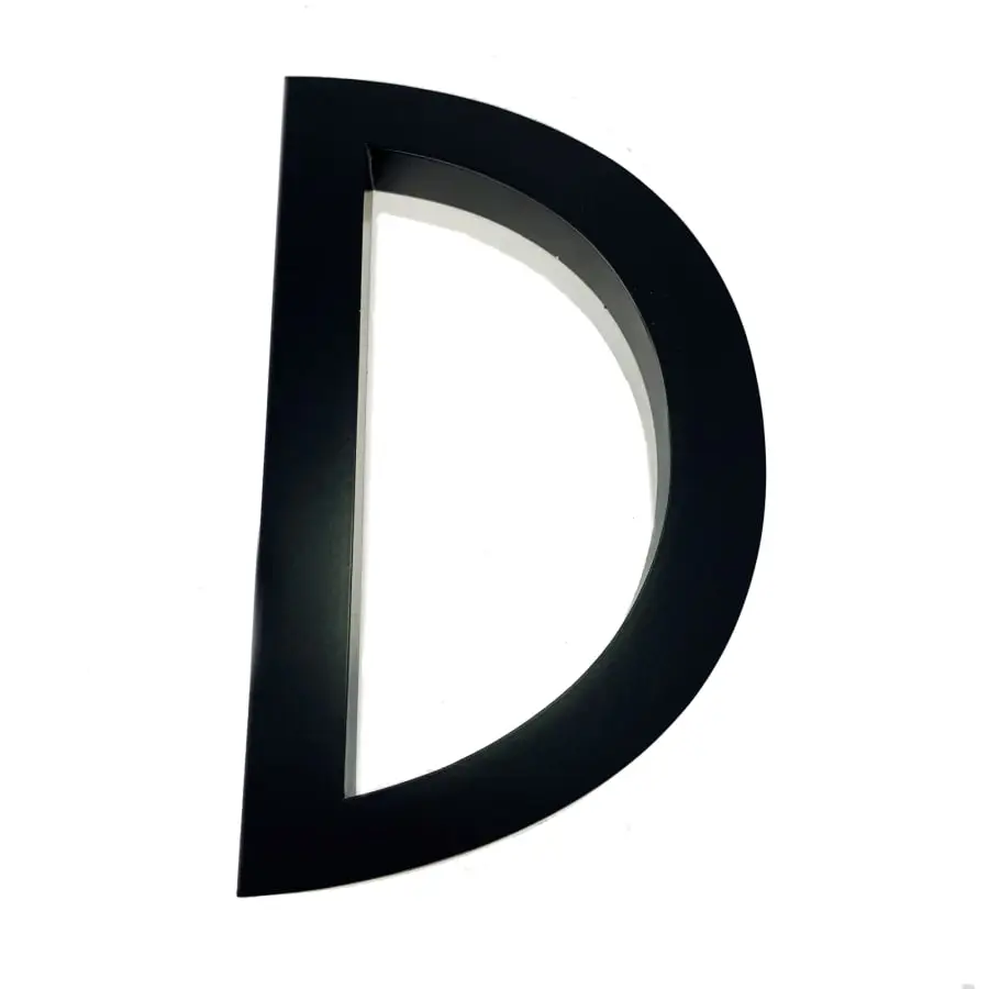 Black house number / letter with led backlight. High-quality materials and a bright backlight guarantee visibility and a long service life. The black metal frame is made of stainless steel (grade 304). The led backlight is waterproof.