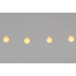 16 gold -colored cotton ball, every 15 cm. Connecting cable 3 m. Transformer 220-240V 50-60Hz 300MA, 3.2V 50Hz 0.96W, IP20. Only for indoor use. Includes 16 plastic clips for attachment.
