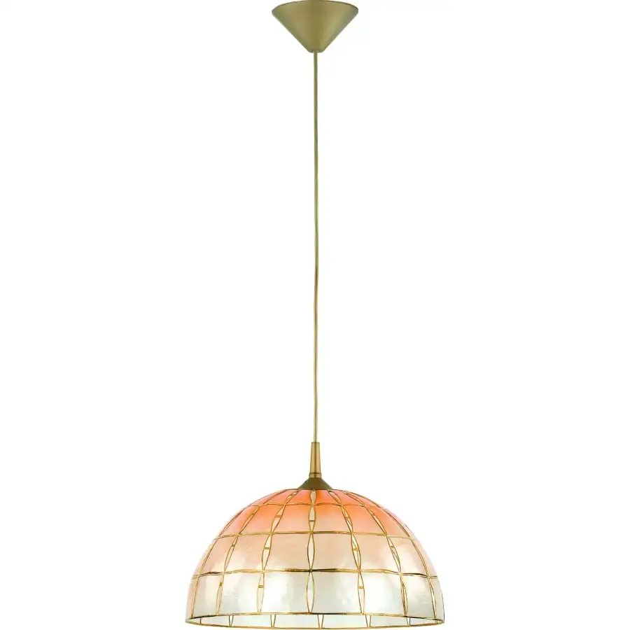 En sällsynt fin pendel av snäckskal som lyser upp hela rummet vackert. Färgen på kupolen är mer rödaktig i den övre delen och blir ljusare mot den nedre delen. Den antika mässingsfärgade möbelsnöret hängs enkelt på krokfästet. Ljuseffekt 1xE27, glödlampa ingår ej i paketet. Diameter 36cm och höjd 100cm. Höjden kan justeras kortare om så önskas. Lampan är tillverkad i EU.