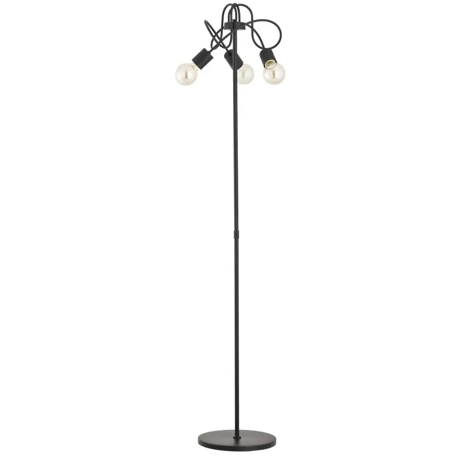 Youthful black Floor lamp with metal bent lamp arms. In the lamp, the light is evenly distributed on all sides around the room, and the choice of bulb also affects the appearance of the lamp. Diameter 33cm and height 162cm. Light output 3xE27, bulbs are not included in the package. The lamp is manufactured in the EU.