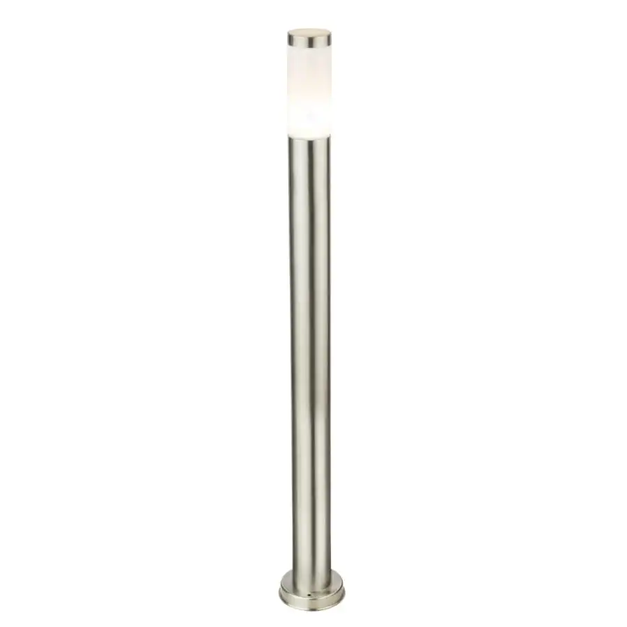 This Boston floor lamp is stylish. Protection IP44, ideal for outdoor use. This model is made of stainless steel and opal plastic. The lamp is equipped with an E27 socket and you can use the light source you choose yourself (max 60W). For energy saving and longevity, we recommend LED lamps.