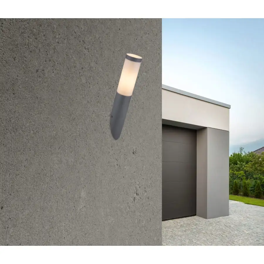 Den eleganta utomhusvägglampan i Boston-serien kännetecknas av sin eleganta design. Vägglampan är idealisk för utomhusbruk tack vare skyddsklass IP44. Denna modell är gjord av rostfritt stål och opalplast och har en total höjd på 39 cm. Lampan har E27-sockel, och du kan använda den lampa du väljer (max. 60W).
