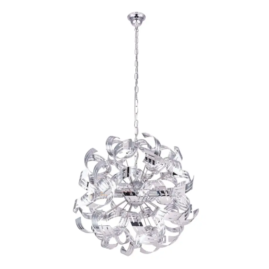 This hanging lamp (Ø 50 cm) offers romance with its curved chrome strips. The playful round lamp catches everyone’s eye. In the bedroom or living room – this 125 cm high indoor lamp is definitely an eye-catcher in every room. You can choose the light source yourself (4 x E14 / max 40 W) and thus also the light intensity and color temperature. For longevity and energy saving, we recommend LED light sources. With the other models in this series, you can complement your interior.