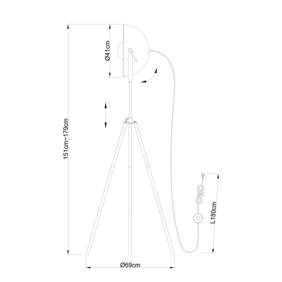 Denna ovanliga, svarta och trebenta Lenn-golvlampa imponerar med sin originalitet. Dess lampskärm är vridbar och har en guldfärg på insidan. Dessutom har den en E27-sockel, så du kan välja upp till en 60 W glödlampa efter din smak.