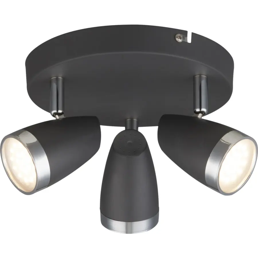 Denna moderna spottaklampa från Nero-serien, gjord av matt antracit, är vacker och praktisk. LV-lampans tre spotlights i antracit och plast ger vardera ett kraftfullt ljus på 250 lumen med en varmvit ljusfärg på 3000 K.