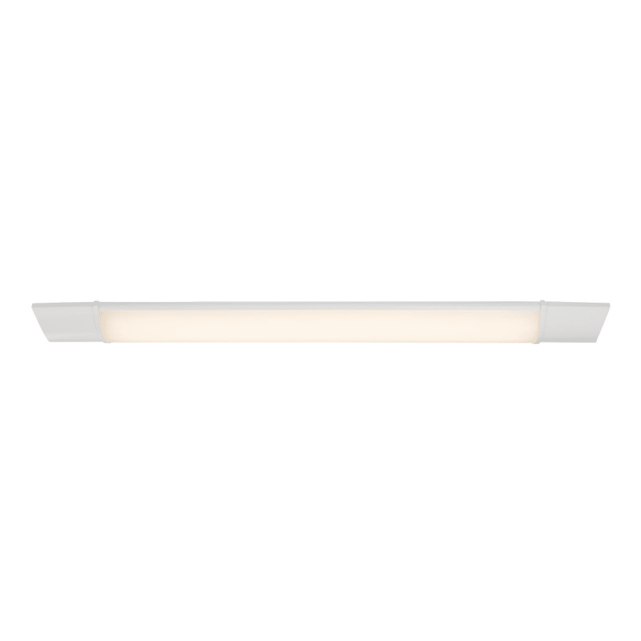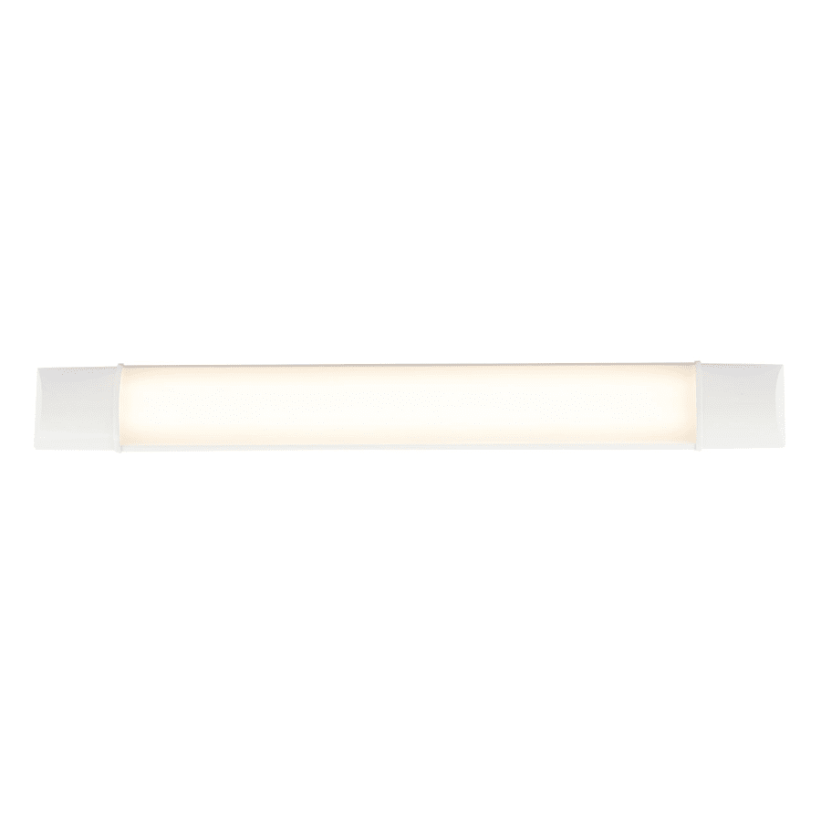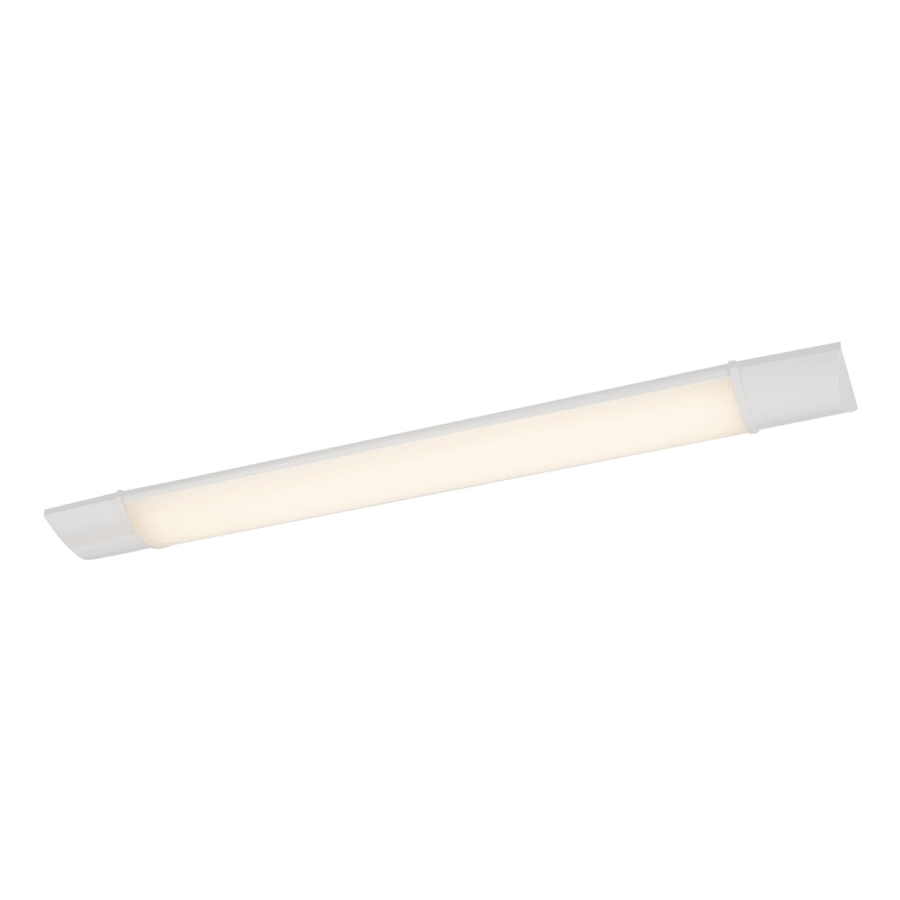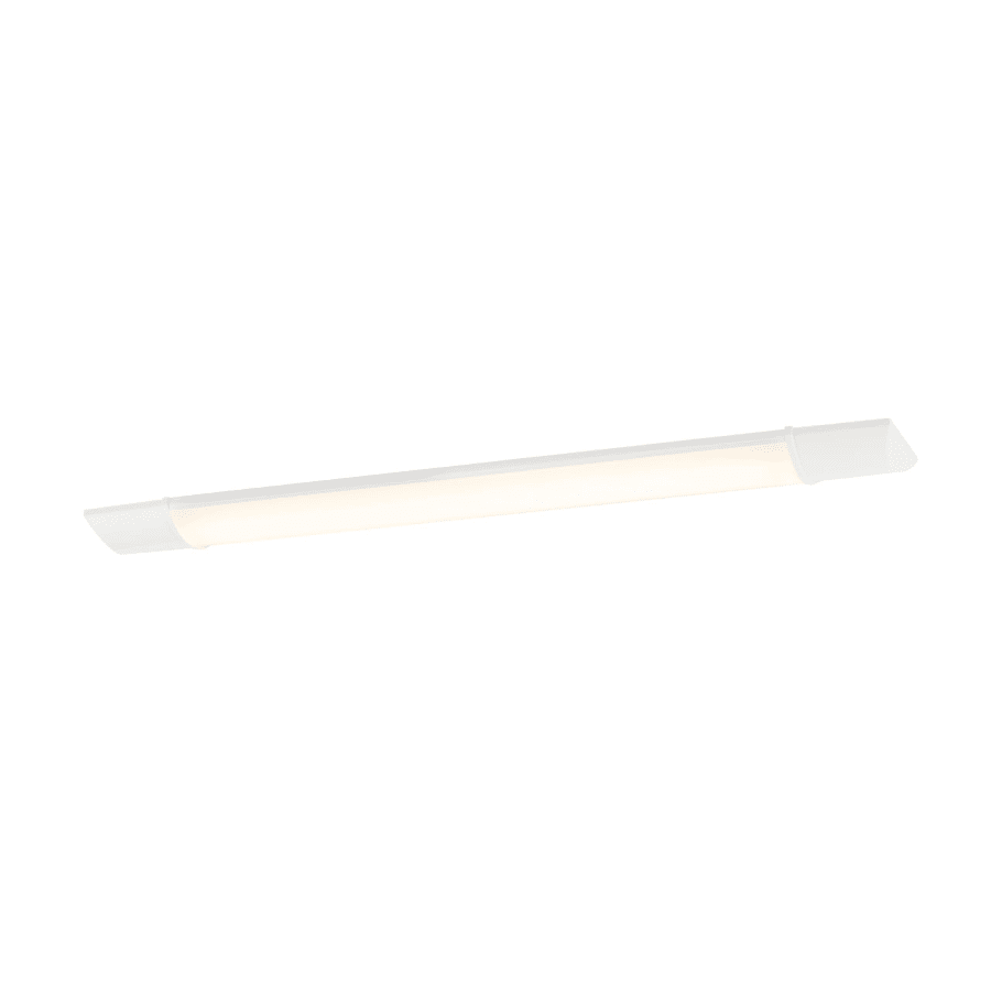 Denna enkla och linjära 60 cm långa (bredd 7,4 cm) infällda lampa är gjord av aluminium, vit plast och opal- och satinplast. Den medföljande 20 W LED ger 1600 lumen ljus med ett behagligt 3000 K varmvitt ljus.