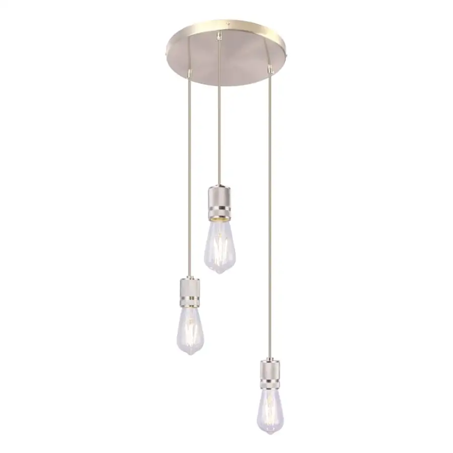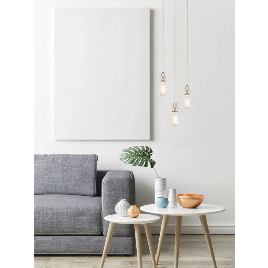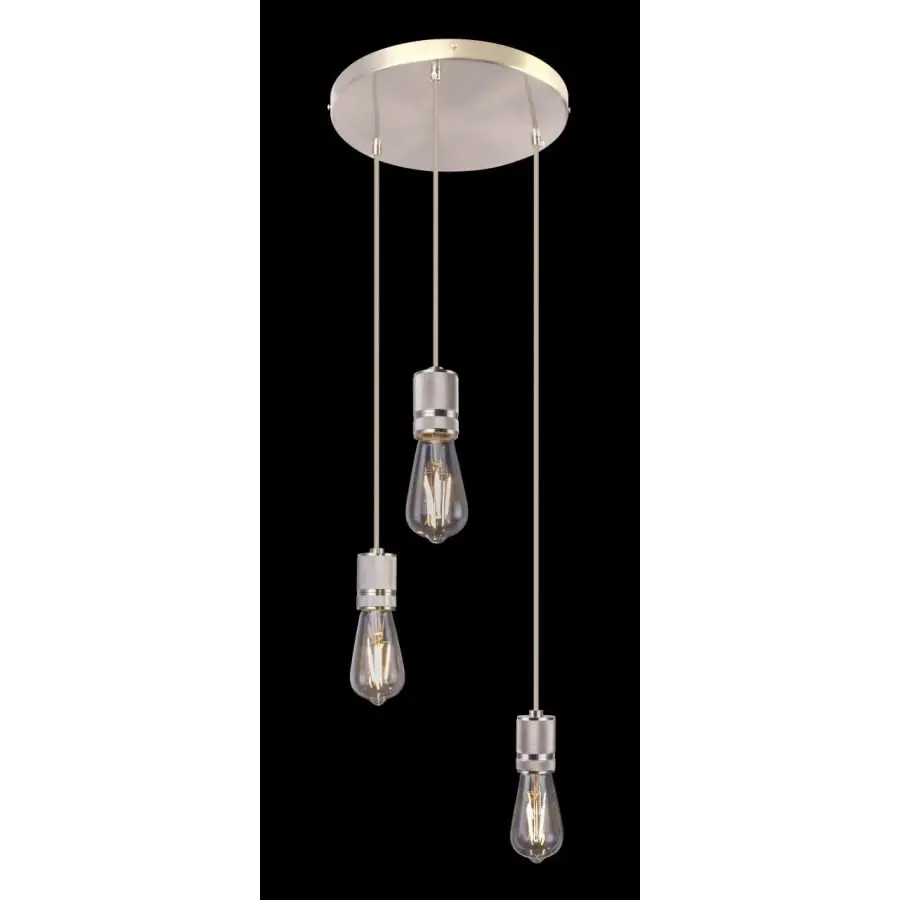 The pendant lamp of the OLIVER series represents both luxurious and simple design. It is 160 cm high and 30 cm in diameter. Three textile cables in anthracite color are attached to a round matte nickel base. The light sources connected to the beautiful matte nickel-plated brackets at the ends of the cable illuminate without shades, so the lamp is easy to integrate into different interior styles. Thanks to the free choice of light source (E27 / max 3 x 60 W), you can determine the light intensity and color temperature yourself. For longevity, we recommend LED light sources. With other lamps in this series, you can complement your home decor.