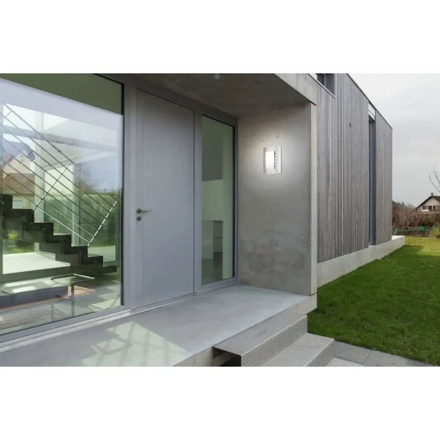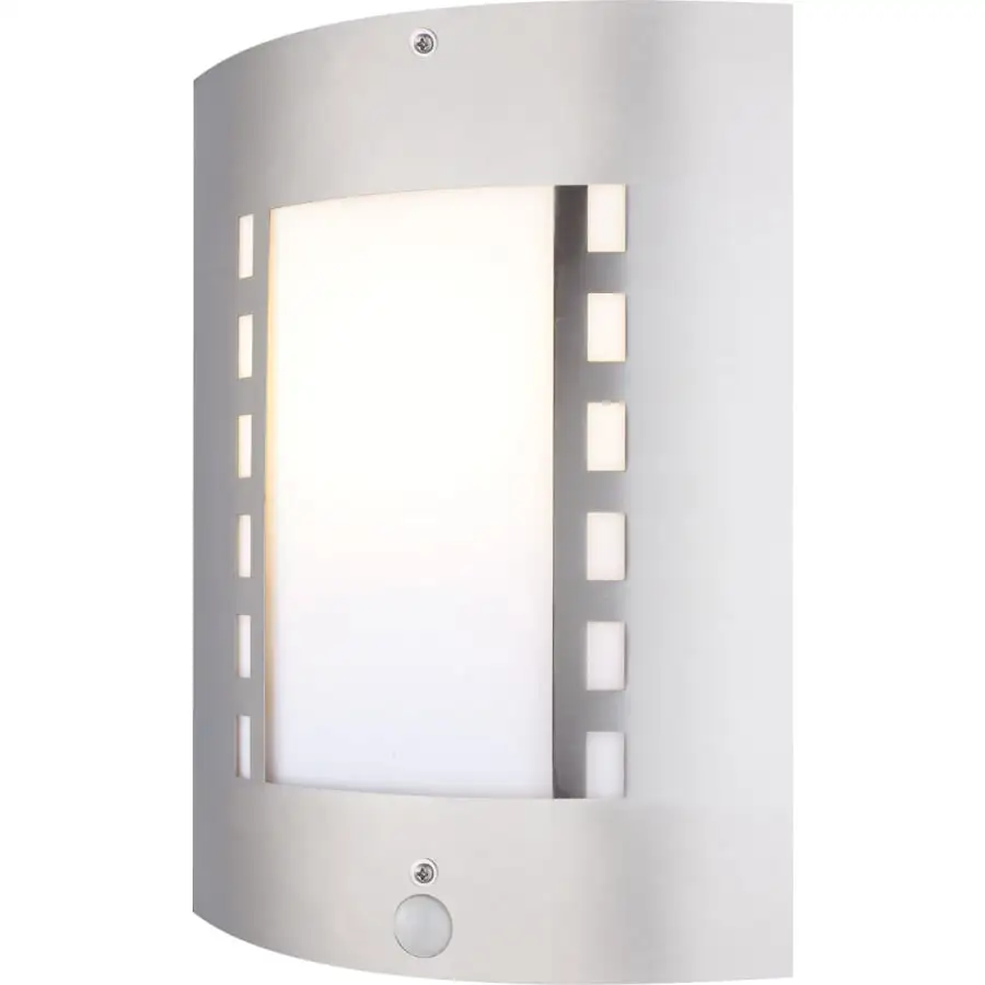 Orlando utomhuslampa har lampfot E27 och kan därför förses med olika lampor (max 60W). Du kan själv ställa in ljusets intensitet och färg. Denna rektangulära lampa (23×29 cm) gjord av rostfritt stål och opalplast är en klassiker på varje yttervägg. En speciell egenskap hos vägglampan är den inbyggda rörelsedetektorn (8 meter / 110 °). Kapslingsgraden är IP44, och den är perfekt för utomhusbruk.