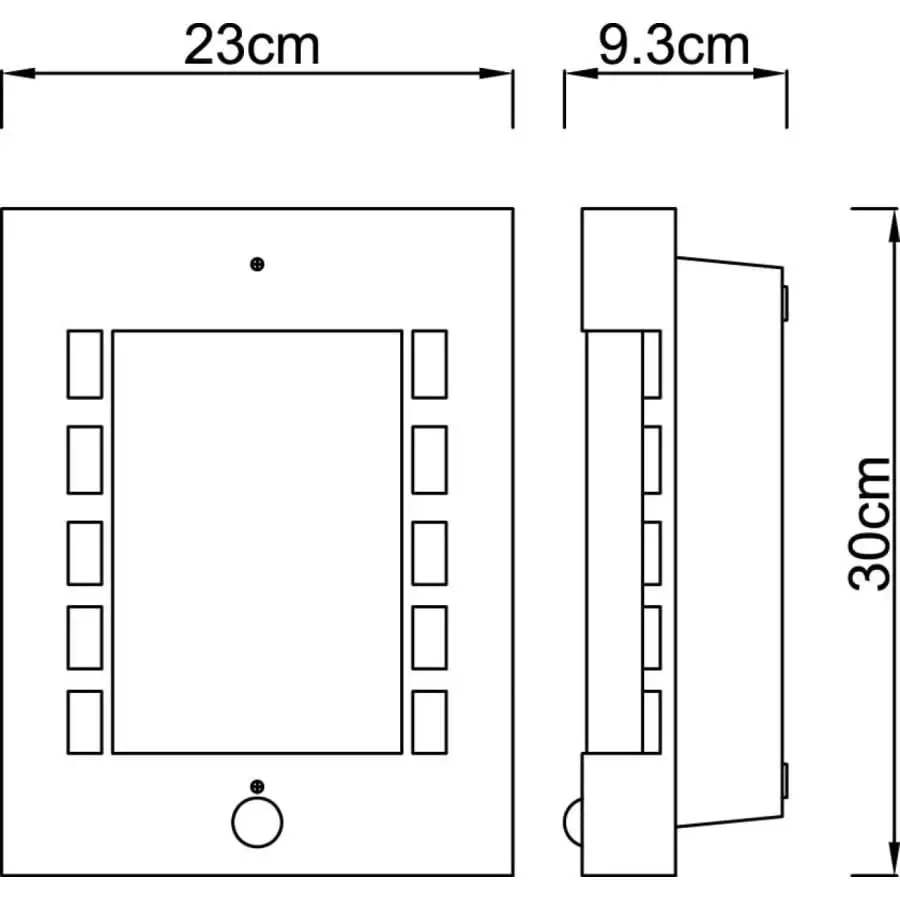The Orlando outdoor lamp has an E27 lamp base and can therefore be equipped with different lamps (max 60W). You can set the intensity and color of the light yourself. This rectangular lamp (23×29 cm) made of stainless steel and opal plastic is a classic on every exterior wall. A special feature of the wall lamp is the built-in motion detector (8 meters / 110 °). The degree of protection is IP44, and it is perfectly suitable for outdoor use.
