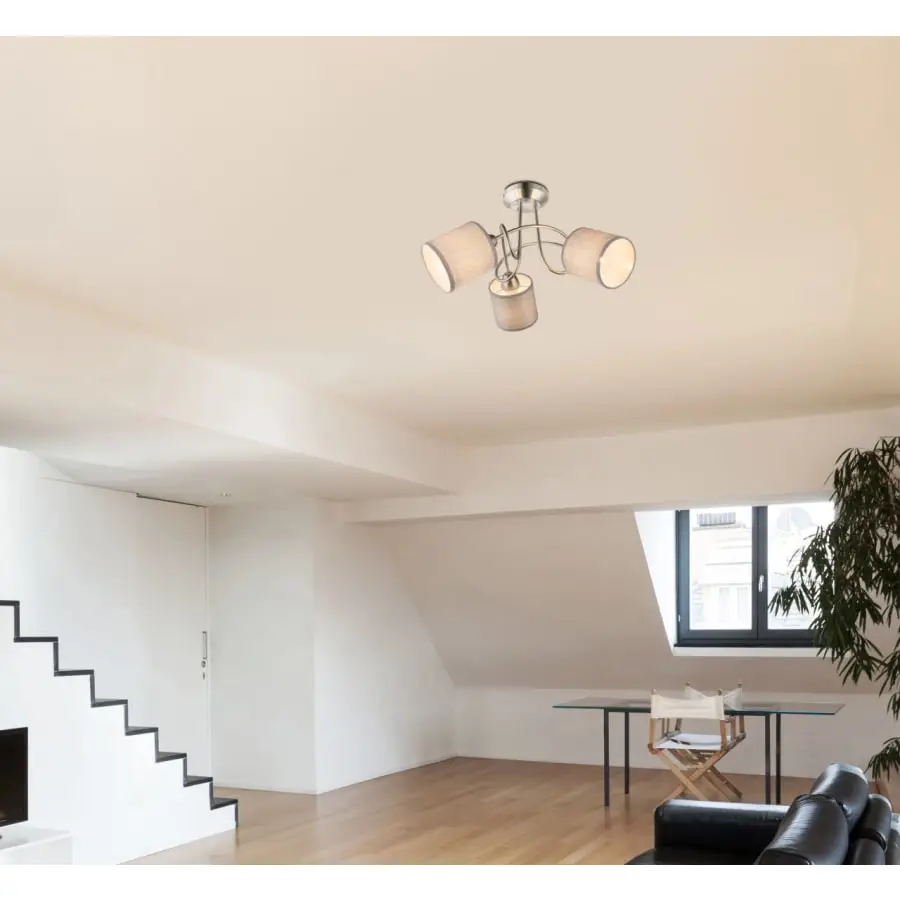 This exceptional ceiling lamp from the Paco series is stylish and high-quality. Its base is nickel-matt in color. The 46 cm diameter allows this lamp to fit even in smaller spaces. Three bulbs for the E14 lamp base are freely selectable up to a maximum of 25 W. We recommend LED lamps due to their long service life and energy efficiency.