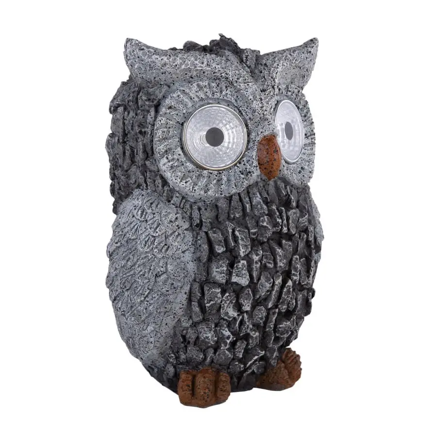 This beautiful solar owl lamp is an eye-catcher in any garden. The gray plastic solar lamp gives the garden a natural atmosphere. This 19.5 cm high solar lamp illuminates with 2×0.06 W LEDs for up to 8 hours. Thanks to the IP44 protection class, it is perfect for outdoor use.