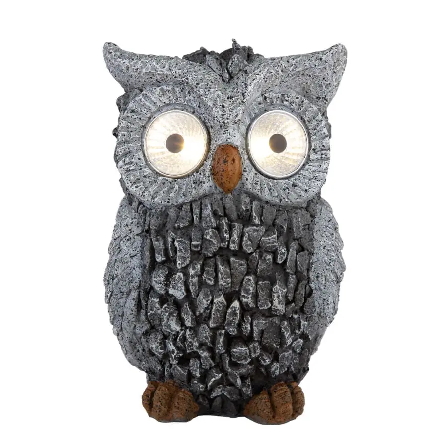 Denna vackra solugglalampa är ett blickfång i alla trädgårdar. Den grå solcellslampan i plast ger trädgården en naturlig atmosfär. Denna 19,5 cm höga solcellslampa lyser med 2×0,06 W lysdioder i upp till 8 timmar. Tack vare skyddsklassen IP44 är den perfekt för utomhusbruk.