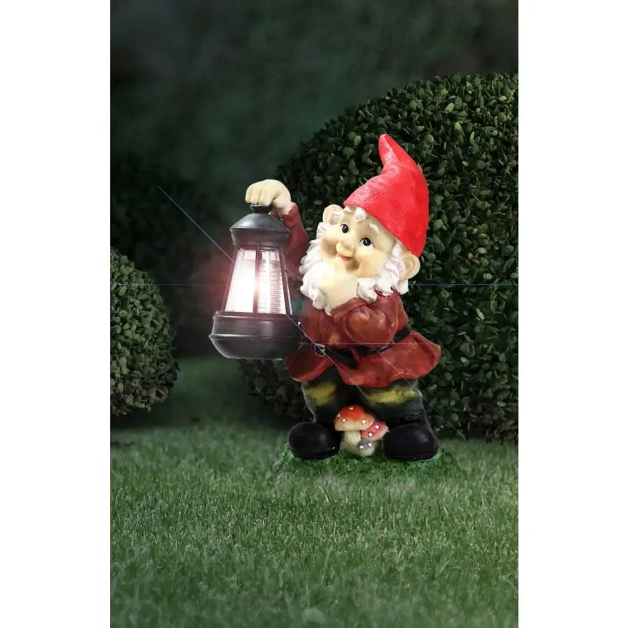En färgglad 29 cm tomte som sollampa. Säkert ett blickfång på varje gård. IP44-skydd gör denna solcellslampa perfekt för utomhusbruk. Den ljusa trädgårdstomten garanterar cirka åtta timmars intressant ljus med full laddning.