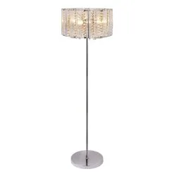 Denna snygga golvlampa med en höjd på 150 cm är gjord av krom och dekorerad med kristaller. Som sidolampa i vardagsrummet eller sovrummet – denna lampa skapar en god atmosfär överallt. Fyra E14-lampsocklar möjliggör användning av olika ljuskällor med en effekt på upp till 40 watt, och låter dig därmed också bestämma ljusintensitet och färgtemperatur själv. Vi rekommenderar att du använder LED-lampor för energibesparing och lång livslängd. Ljuskällor ingår inte i leveransen. Du kan komplettera din inredning med andra lampor från samma serie.