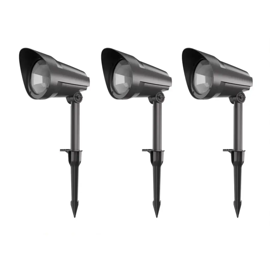 Belysningssetet har en instickstransformator med 6 m anslutningskabel, 1,5 m + 1,5 m kablar mellan de två lamporna och en 1,5 m anslutningskabel i den tredje.