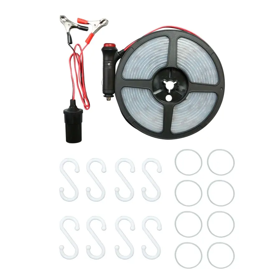 Suitable for indoor and outdoor use, silicone-coated LED light strip for 12V systems with a cigarette lighter connection. With the S-hook, it is easy to hang on temporary or permanent fixtures. Uses e.g. boat, caravan, etc. Non-dimmable model.