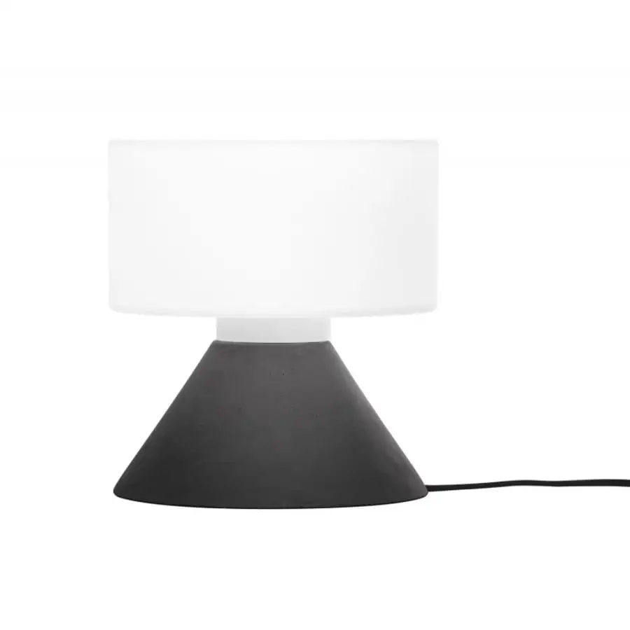 Concrete är en stämningsfull bordslampa av betong och munblåst glas. Det rekommenderas att använda en LED-ljuskälla i denna lampa. Finns med mörkgrå eller ljus betongbotten.