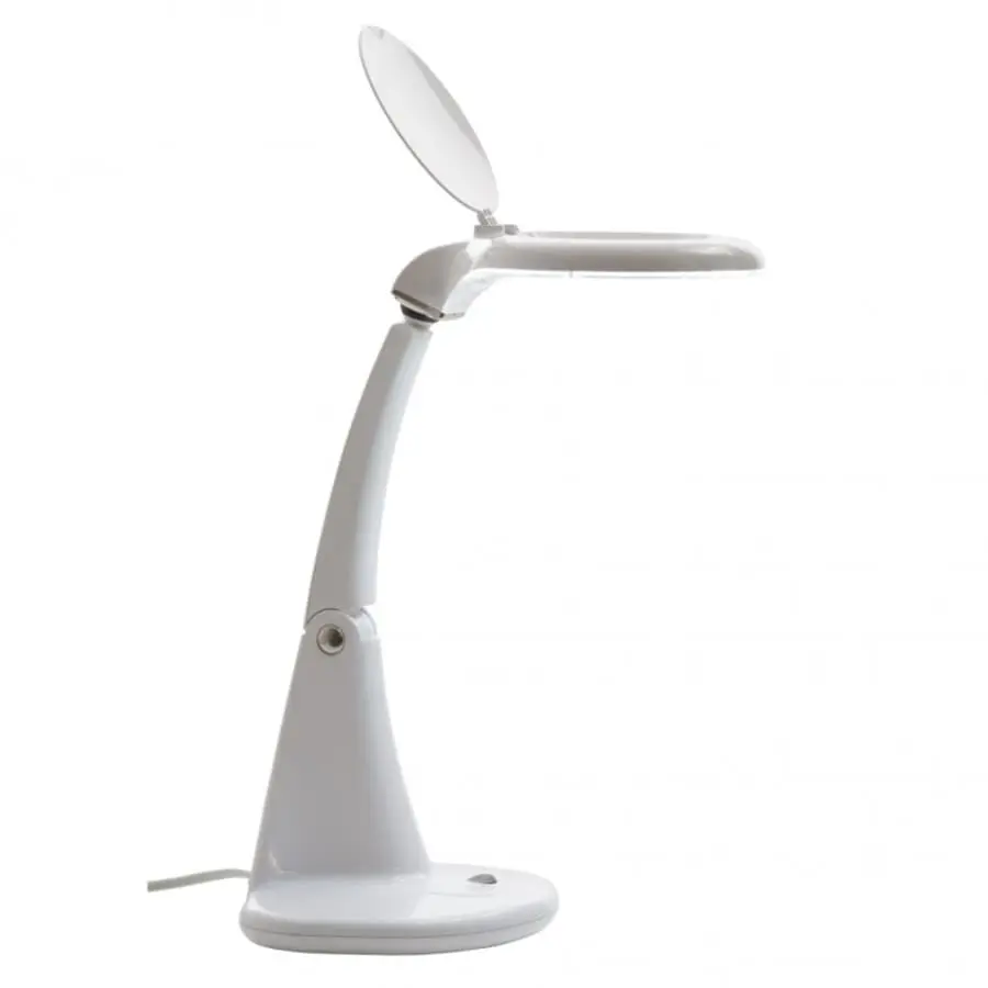Innolux Magni Focus LED is a conveniently sized magnifying glass lamp. Thanks to its lightness, it is easy to move and place in different places. The length of the connecting cable is 1.5 meters. The 3D lens of the Magni Focus is clear glass, with a smaller 12D lens embedded in the bottom edge. In this way, it can be used for the simultaneous examination of objects that require different magnifications. The diameter of the lens is 100 mm and the embedded, small lens is 25 mm. The lens is protected by a hinged flap. When the flap is closed, the lamp can be used as a normal desk lamp.