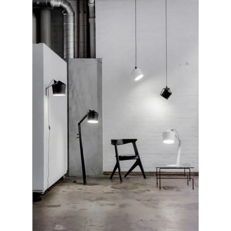 ”The Pasila series is inspired by contemporary architecture, and in the design language, the aim is to combine sharp and round shapes in a modern way. The same shade part naturally moves to four different uses, from a hanging lamp to a wall lamp and from a floor lamp to a table lamp. The base of the lamp can be seen and the details consist of simple things, such as highlighting the cord and an indirect light source. In this lighting series, the design language of the 50s meets the design of the 2015s.”