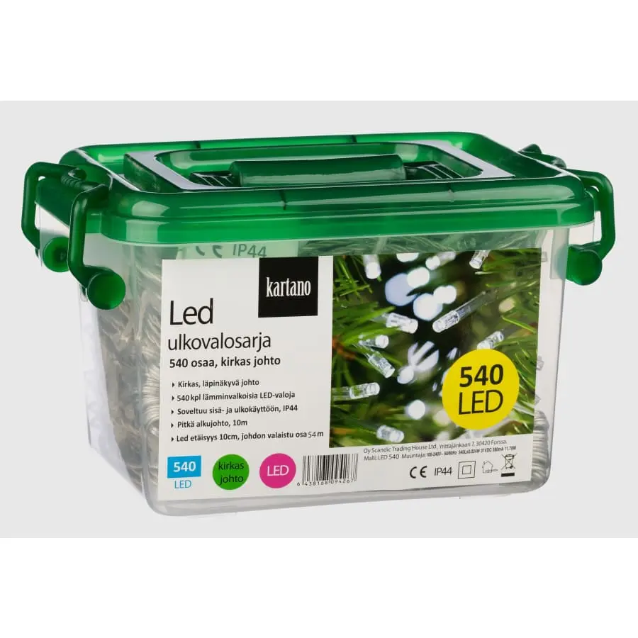 – 540kpl lämminvalkoista lediä, ledien väli 10 cm