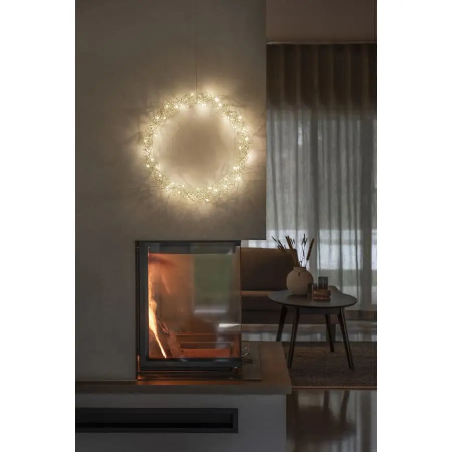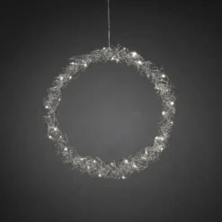 Silver metal wreath, diameter 45 cm. For indoor use. Kranssisa 40 warm white. LEDs. Connection cable length 5 m, transformer.
