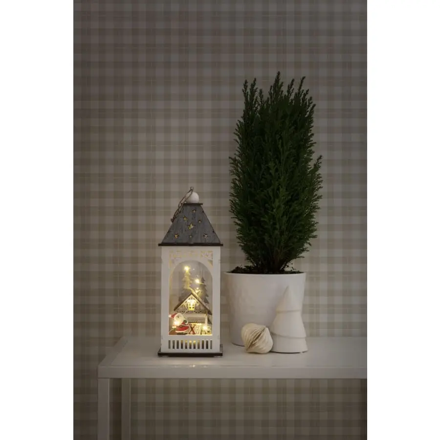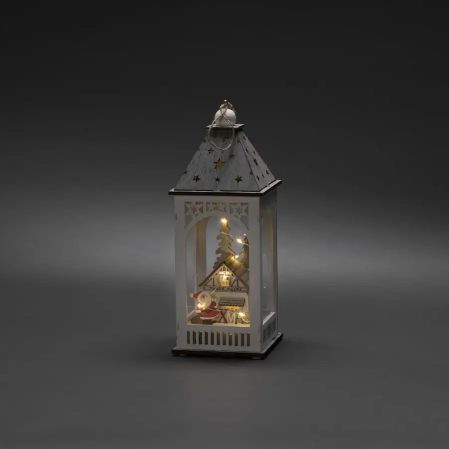 Bordsdekoration Lykta för inomhusbruk, vitt och gråmålat trä.