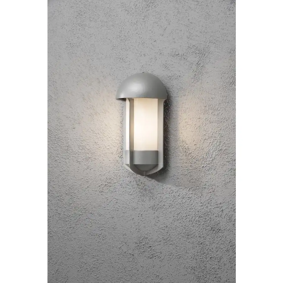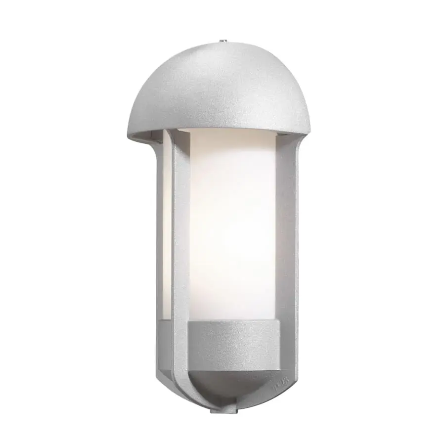 TYR vägglampa, ”tak”. Gråmålad aluminium, kupol i opal akryl.