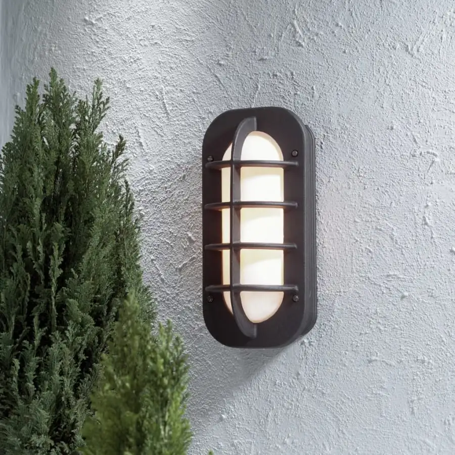 Konstsmide Loke 514-752 utomhusvägglampa, IP23, längd 10 cm, bredd 19 cm, höjd 36 cm, opal akryl, aluminiumstomme, kroppsfärg svart, sockel i lampan, glödlampa E27 max 1x60W ingår ej, glödlampa max höjd 200 mm , reservglödlampa kan beställas med kod 513 -002