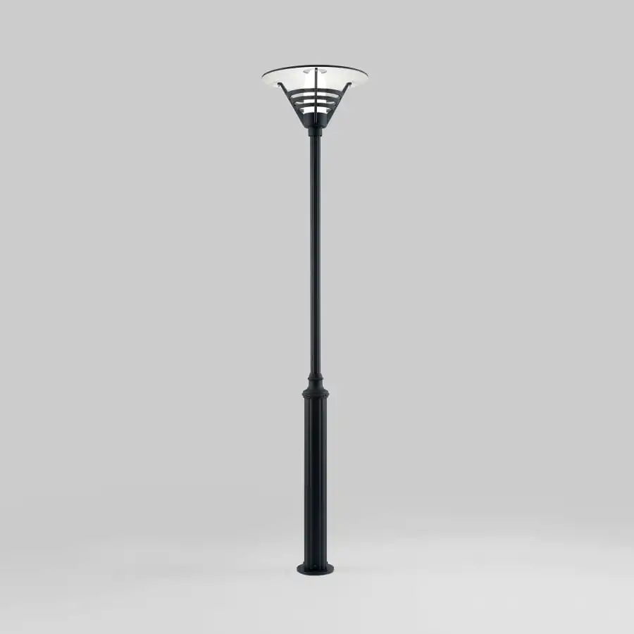 Gemini pelarlampa, inkl Draco pelare. Svartmålad aluminium, kupol av opalglas.
