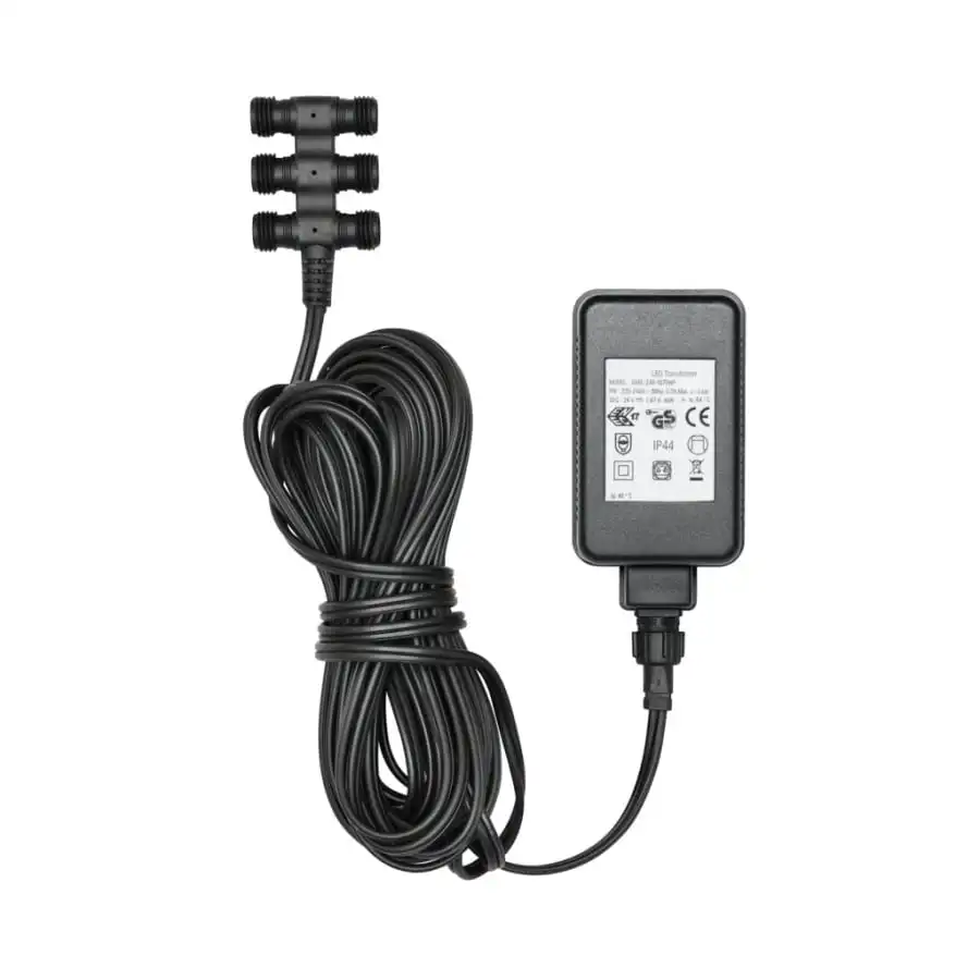 Konstsmide 12V serie 7446-000 transformator max 45W, kabel 10 m, sex gafflar