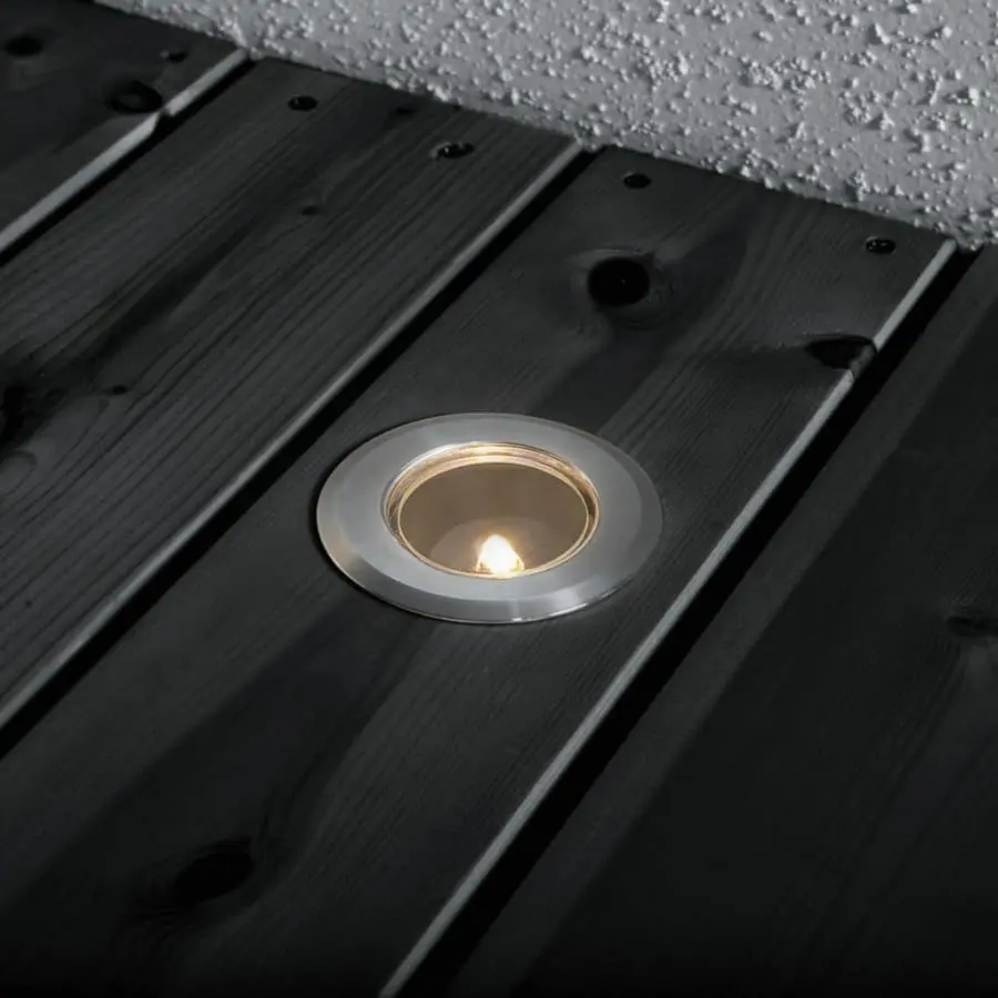 Konstsmide 12V serie 7479-000 terrassljus serie 3 st/set, IP44, längd 3,5 cm, bredd 3,5 cm, höjd 6,5 cm, klarglas, stålstomme, karossfärg rostfritt stål, glödlampa G4 LED 3×1,5W ingår ej, glödlampa max. höjd 40 mm och diameter 12 mm, anslutningskabel 10 m, 12V/12W transformator, reservtransformator kan beställas separat med kod 7483-000, förlängningssats kan beställas separat med kod 7482-000