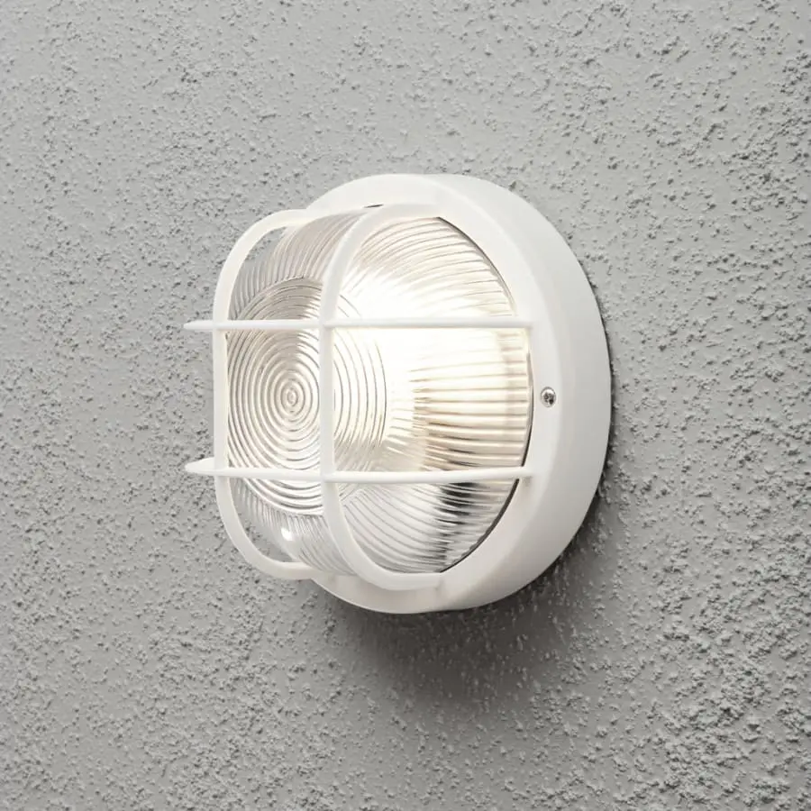 Konstsmide Mantova 7651-200 outdoor wall lamp, IP44, length 10.5 cm, width 18.5 cm, height 18.5 cm, grooved clear glass, body plastic, body color white, bulb E27 max 1x40W not included, bulb max height 110 mm , double insulated class II